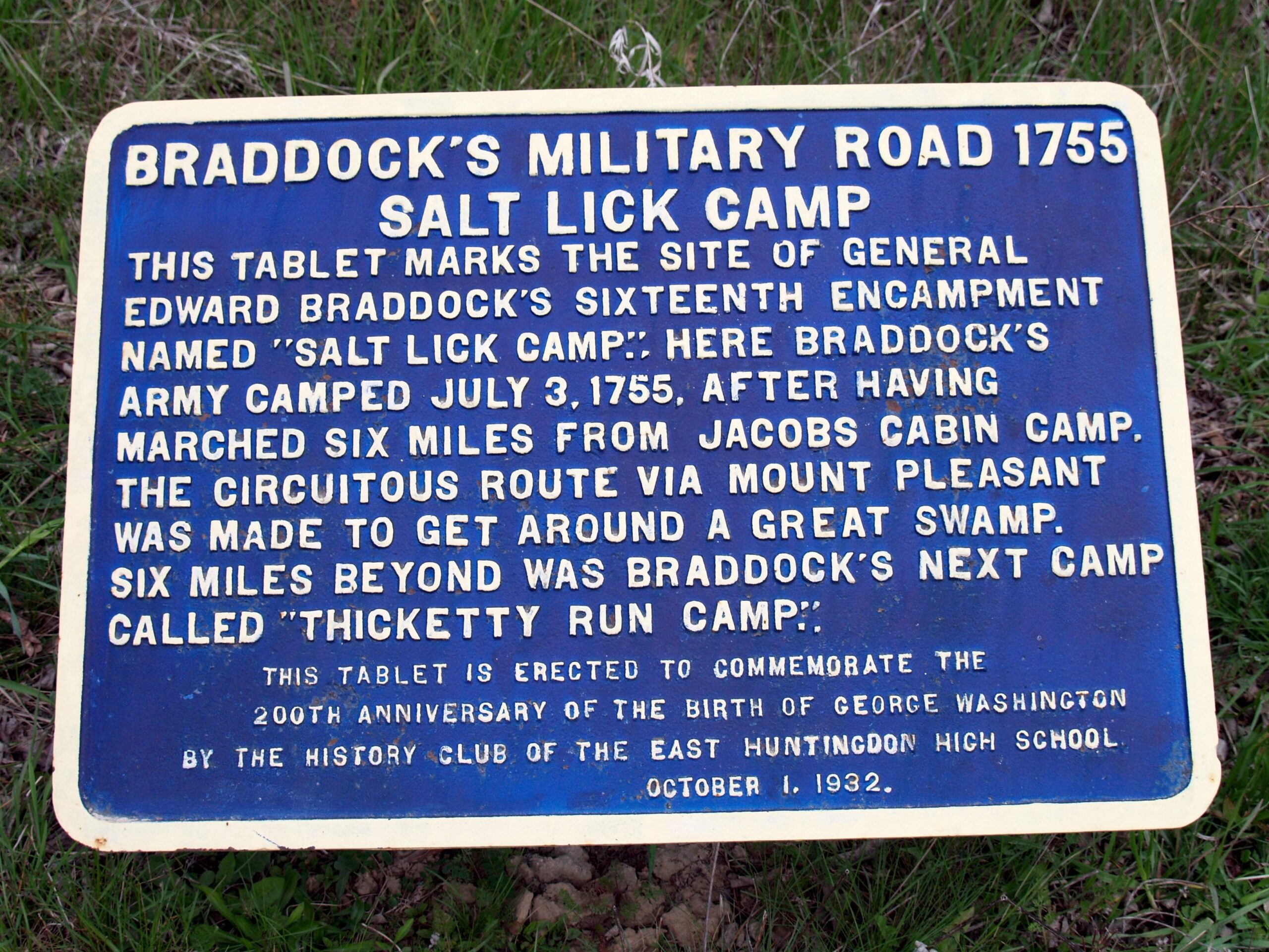 Salt Lick Camp – Braddocks Expedition 16th camp