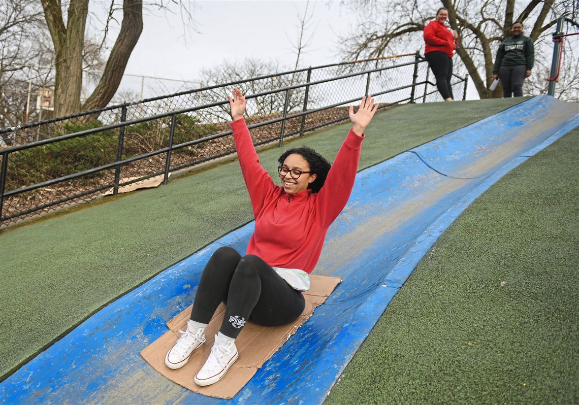 This is the iconic blue slide in Frick Park, Pittsburgh, PA. It was made famous by Mac Miller’s top selling album “Blue Slide Park” which is it named after. Frick Park and the Blue Slide are seen in numerous photos and music videos by Mac Miller. The slide is made of concrete and is a popular hang out spot for young kids. Due to pain wearing off on the slide, kids use cardboard to slide down the steep hill.