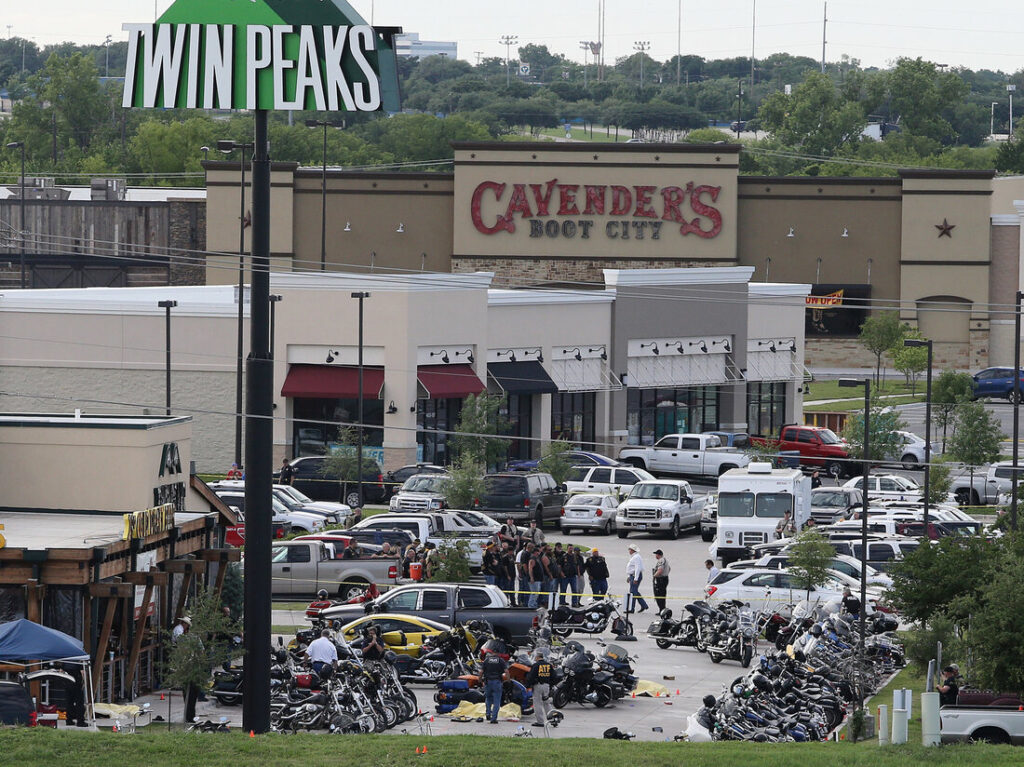 On May 17, 2015, a deadly shootout occurred at a Twin Peaks restaurant in Waco, Texas, where over 200 people, including members of motorcycle clubs like the Bandidos and Cossacks, gathered to discuss political rights for motorcyclists. Law enforcement officers, including 18 from the Waco Police Department and four Texas Highway Patrol troopers, were present outside the restaurant to monitor the meeting. According to police reports, they returned fire after being shot at.